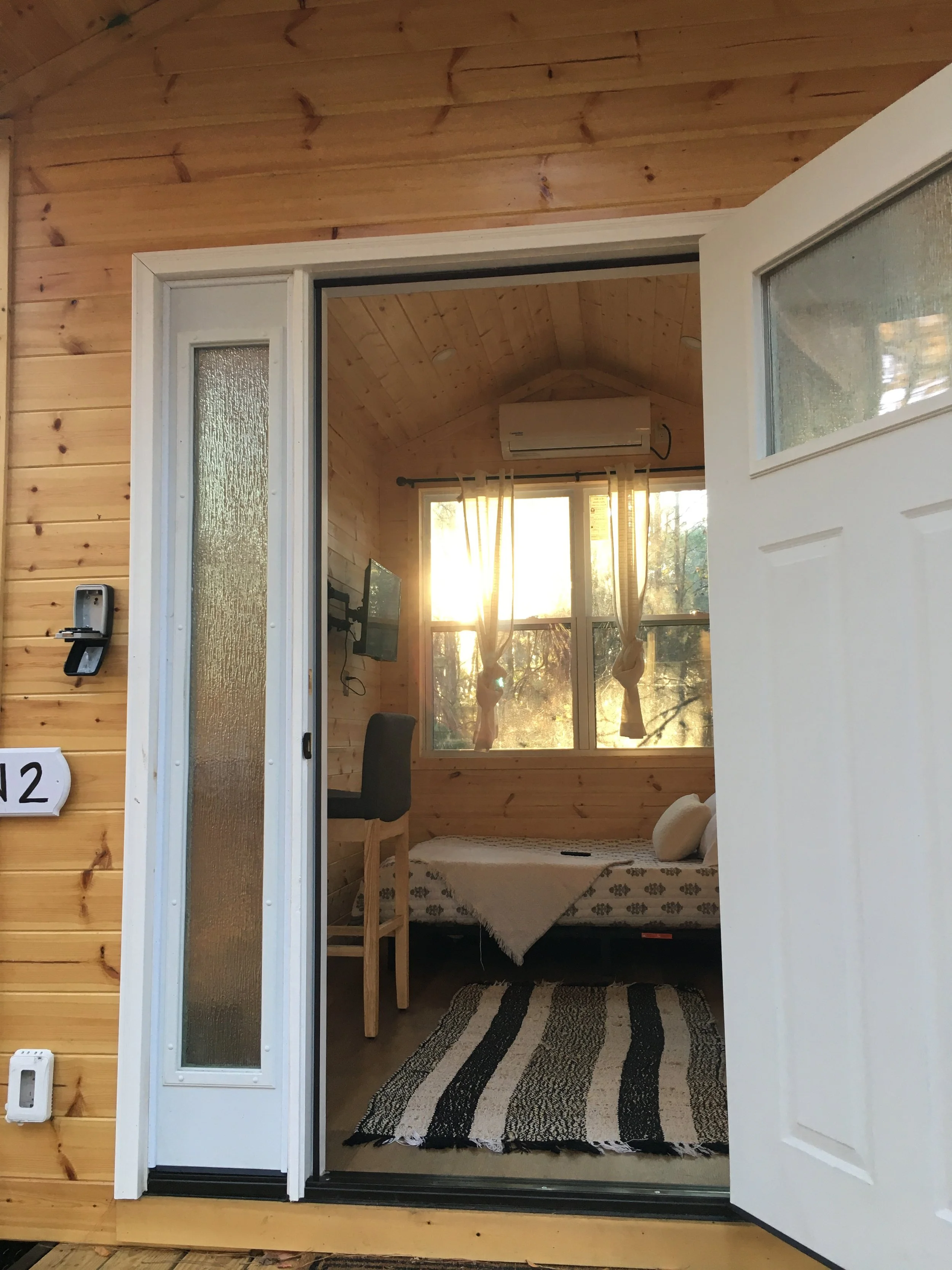 Mantra micro tiny cabin is our newest glamping model that provides an ultra simple, inexpensive housing solution, office or guest space for those who don’t need an indoor kitchen or bathroom.